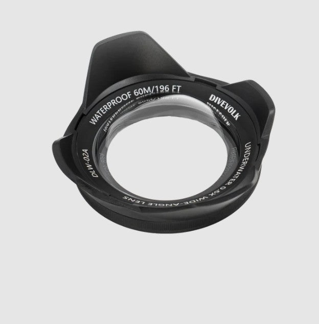 The new DLW-02A remedies the distortion caused by the flat port of an underwater housing. When used with camera phones, it allows features such ultra wide-angle to be useable underwater. The lens will correct the distortion and recover the field of vision lost when underwater.